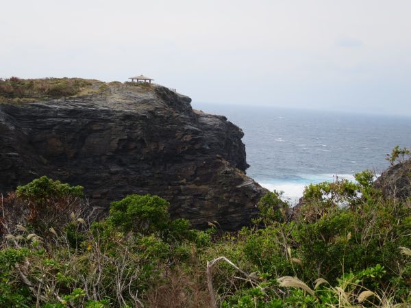 島中央の山を越えて、北西方面に向かう。 鯨を監視する稲崎展望台は、工事中で入れず・・・。