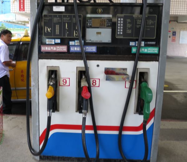とりあえず、レンタル屋の人が張ってくれた95って書いたガムテープを指さす。 3.8Lほど入って420円。リッター110円ぐらいと、日本より安いね。