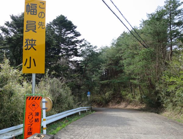 急勾配のコンクリート道、下りは中々怖い。 その先で、道に迷い 県道7号で場所がわかったのだが、きのこ山・足尾山の林道に入っていく。