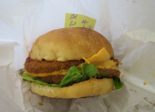 11:30で腹も減ってきたので、ダブル魚コロッケバーガー+あごカツを食う。