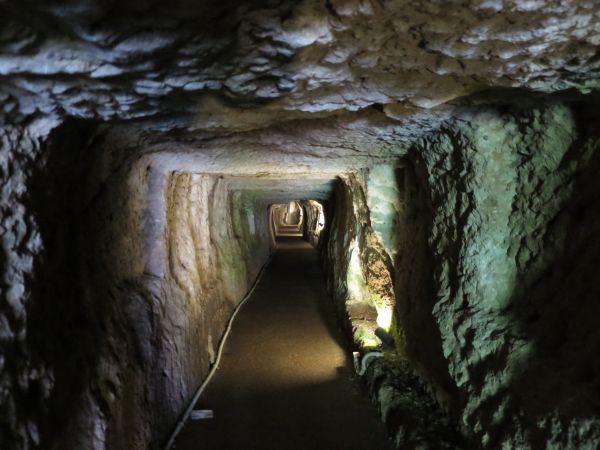 手彫りの坑道が歴史を感じる。中は涼しい。