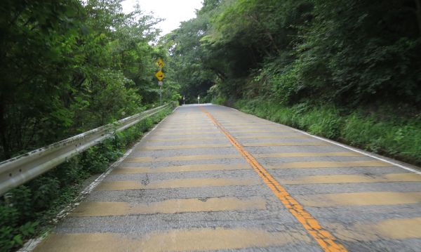 六甲山、明石神戸宝塚線へ入っていく。 残念ながら路面は荒れ気味、そしてゼブラが大量すぎる。