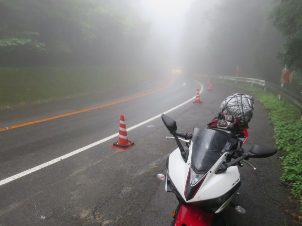 30分ほどして雨が弱くなったので、阿蘇に向けて出発。 ホント、雨は楽しくない。 朝日台レストハウスに屋根付き駐輪場を発見したので、 珈琲とチーズケーキ、そして牛乳が美味しい。 10:30頃、ついに雨が止んだ。