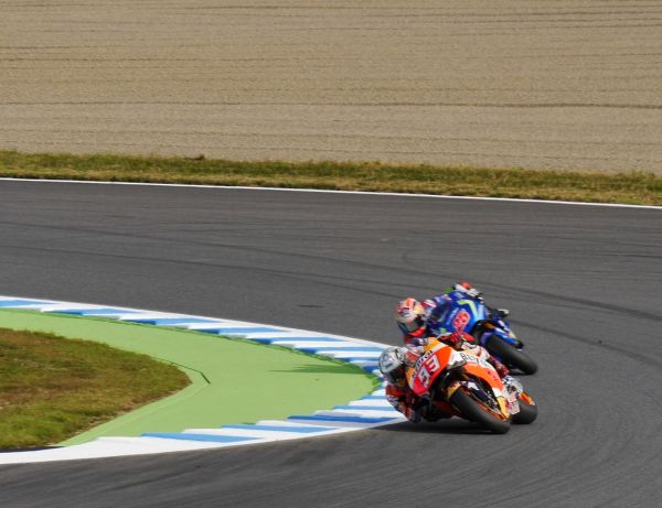 300mmの望遠だと、V席でも少し遠く感じる。 MotoGPのフリー走行が終わって、インターバル中にホスピタルガーデン内の Moto2のフリー走行開始。今年は中上の調子が良いので期待大だ。