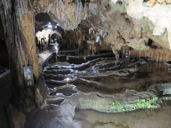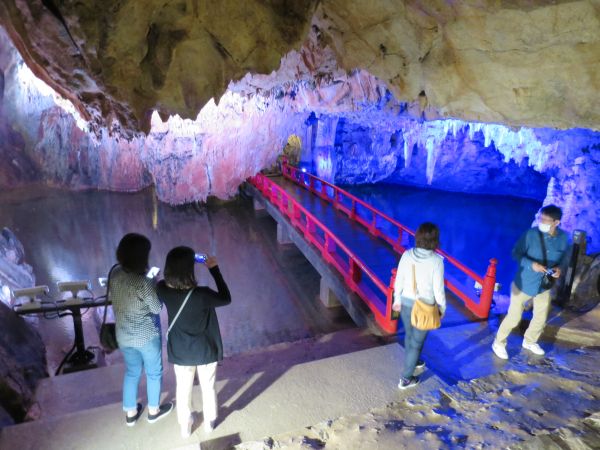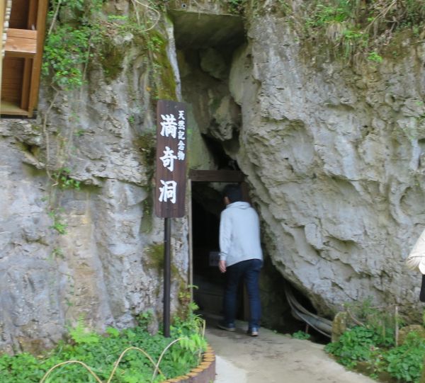小さいながらも、なかなか迫力があって良かった。 けど、県道50で道に迷って少しタイムロス。 次の鍾乳洞は、満奇洞(まきどう)。大人1000円 車は満車状態で遠い駐車場みたいだが、バイクは近くまで行けた。