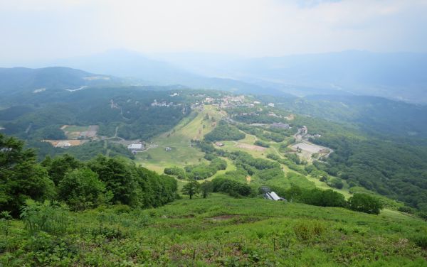 今年の兄弟登山の第一弾は、斑尾山と四阿山へ。 正月に話をしてたときは恵那山だったんだけど、交通の便が悪くて移動が大変なので -------------------- 7:52発の新幹線に乗るべく、7時過ぎに自宅を出て東京駅へ。 3人席の通路側に座り、朝食を食べる。 9:43 飯山駅に到着。 兄は車で移動してきて、無事に合流。 山道を走ってたら、前から逆走車が来てびっくりしたり。 10:25 ビジターセンターである山の家に到着。 天気予報は15時頃に小雨だったんだけど、既に雨がパラッと来たりしてた。 かえでの木トレイルという道が良さそうだったので、第七駐車場から登り始める事にして移動。 11時頃から登りはじめ、かえでの木トレイルの看板を見つけるもゲレンデを登る道だったり・・・。