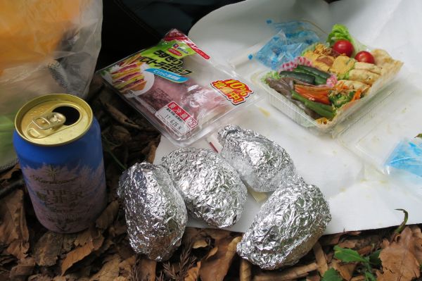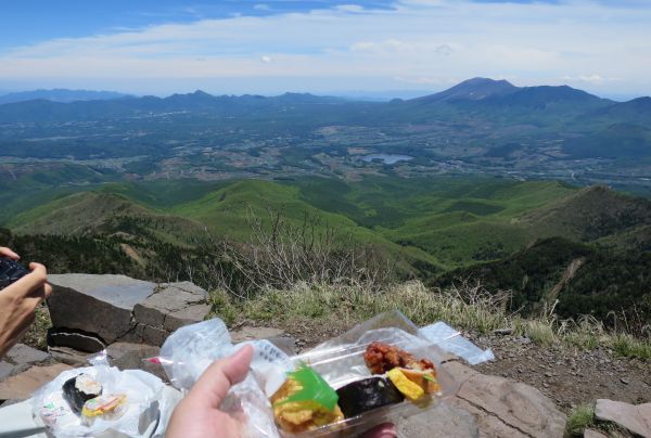 予定よりも少し早く山頂に到着。まだまだ行けるじゃん。 奥の方に場所を確保し、弁当を広げる。