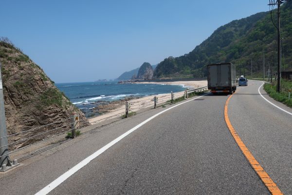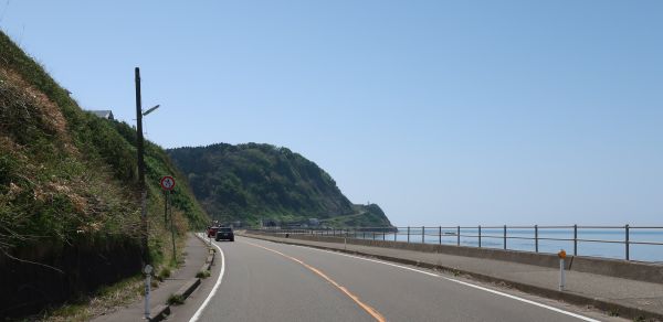 狭い林道を抜けて海岸線沿いの国道に出る。