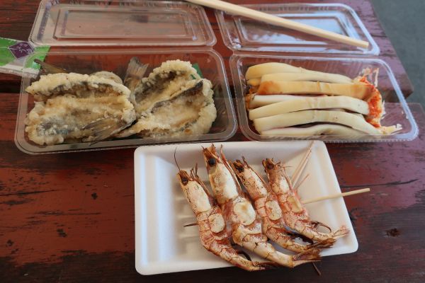 屋台で売ってる海鮮焼きを購入。 イカ焼きは姿と切ったのがあるけど、切ってあるほうが 道の駅からヘリの遊覧飛行を実施してた。30分ほどで5000円ぐらいだった。 昼食後、笹川流れを引き返す。
