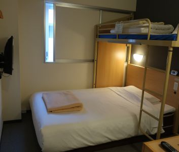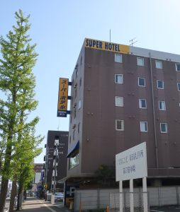 入場は無料で、門と櫓の中に入れる。 平城なので、あっという間に見終わる。 ネットで調べて、近くにある聖籠観音の湯 ざぶーん へ向かう。 寝不足だった事もあり、念のために1時間ほど昼寝する。 その後、ホテルまで移動。明るい内に到着した。 先着順の平面駐車場は空き1台、特に駐輪場は無くて駐車場を使い800円かかる。 ホテルでだらだらしてたら日が落ちた。 Befcoばかうけ展望室へ徒歩で向かう。15分ぐらい歩いたかな。