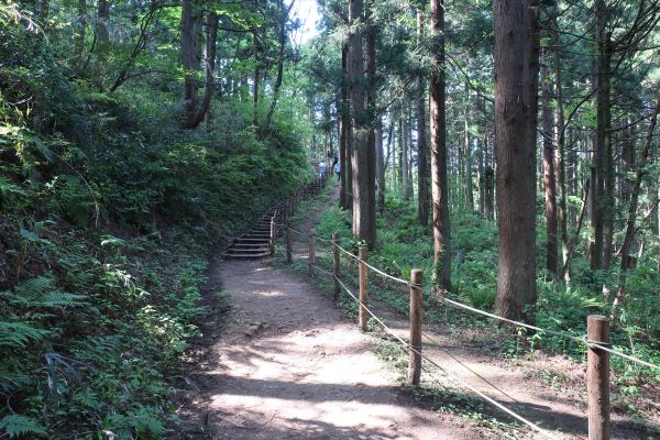 最初に、神社までの長い階段を上っていく。 とはいえ、山道というよりも遊歩道って感じか。