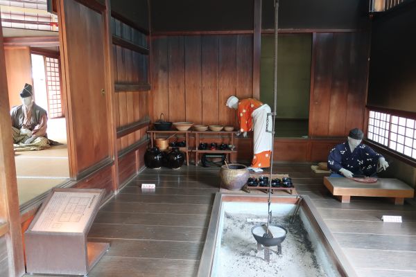 駐車場があった施設にバイクを止めて、全体マップで史跡の位置を確認する。 ネットで調べたら、城跡まで歩いて1時間ほどだそうだ。 その前に、せっかく駐輪したので復元町並みを見学する。