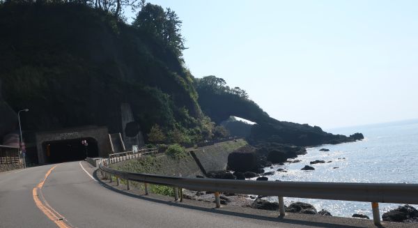 この岩のトンネル、昔はこの下を道路が通っていた。 この海岸線って、かなり昔に岩が車の上に落ちた事件があったところで 廃道系Webページに越前海岸の廃道を紹介した企画があるけど、なかなかに興味深い。 後半はR305が2つに分かれて、海岸線沿いはしおかぜラインになる。