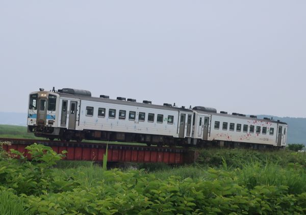 R44に合流し、出発から1時間ほどで厚岸に到着。 曇り気味で景色はいまいち。 前に道道123を走ったので、今回はR44で東に向かう。 国道は線路と併走で、ちょうど気動車に追いつく。