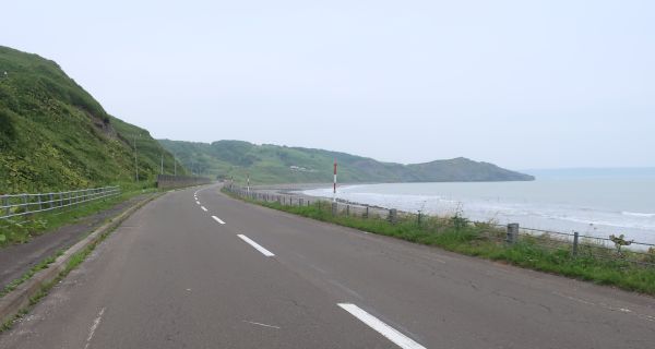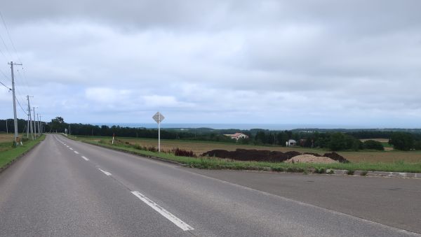道を北上すると、遠くにオホーツク海が見えてくる。