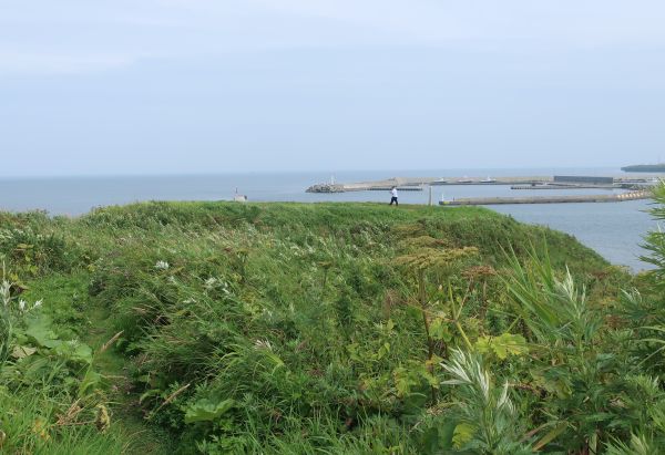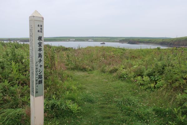 肉眼でも歯舞諸島の島が見える。 昼食は鈴木食堂でサンマ丼を食べようかと思ったが、生サンマが未入荷だったのでやめ。 他の食堂を物色するも、ラーメンやカレーだったのでやめる。 15分ほど滞在して、出発する。 少し走ってヲンネモトチャシ跡、砂利の駐車場にバイクを停める。