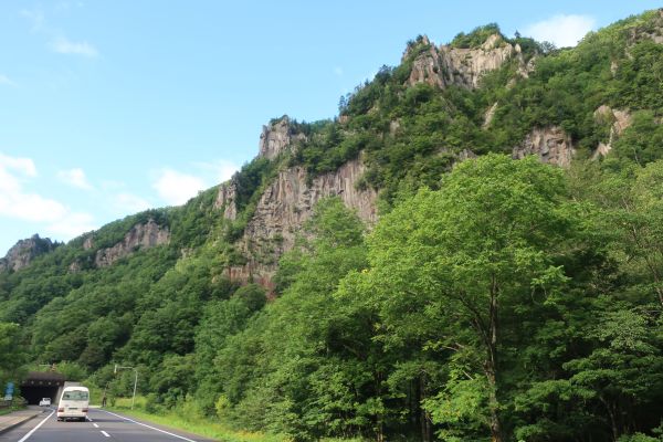 定食にはホタテと平貝の炭焼きが付いてて、それも美味しかった。 昼食後は、感動の径を陸側に走るために少し戻る。 こっちは普通の峠道な感じ。市街地の抜け道になってて車が多い。 感動の径の続き、道道490と246を走る。 道の駅メルヘンの丘めまんべつで少し休憩する。 ツイッターで層雲峡を見ると晴れてるっぽかったので、層雲峡経由として道道217を走る。 道道143と261を走る。