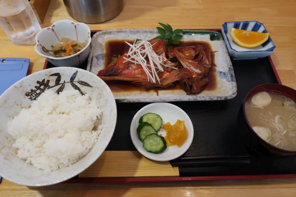 吟醸酒が好きという話をして、店員のオススメを購入する。 ついでに大吟醸ソフトクリームを食べる。これは普通な感じだった。 県道34を東へ走って鴨川で給油、13時過ぎなのでR128沿いにある食堂で昼食にした。