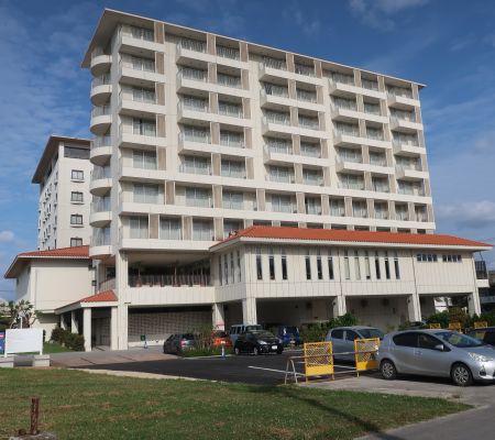 ビールとつまみは美味しかったが、沖縄そばはイマイチだった。 オリオンから出てるDOSEEというアルコール入りスパークリングウォーター購入。 早朝出発だった事もあり、早めに就寝する。 -------- 日本ハムが沖縄キャンプで使っているホテルらしい。 駐輪 :平面駐車場 走行距離 104.2km ---------- 今日の予定は、いくつか展望台を経由して古宇利島を走る。 朝食はバイキング形式、開始から30分遅れで食堂へ。 沖縄らしくタコライスが作れるのが良い。 連泊なので、荷物を置いていけるのが良い。 まずは名護市役所へ、日曜なので閉まってる。