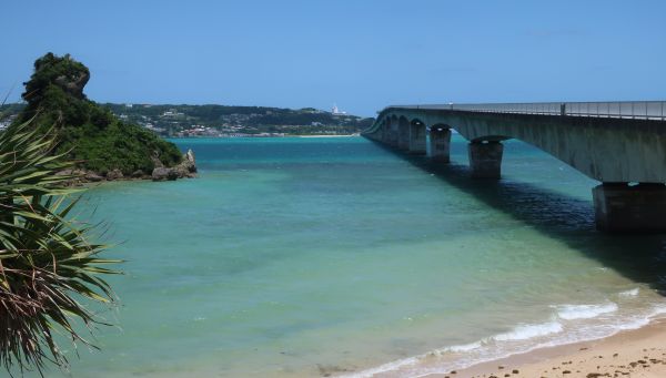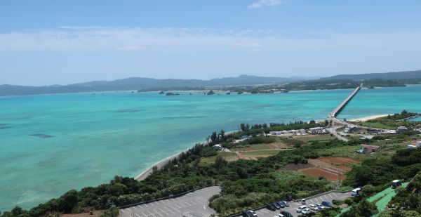 今日のメイン、古宇利島へ。橋の手前に駐車して写真を撮る。