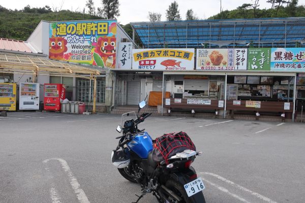 砂浜歩いてコンビニへ向かい、夕飯を買ってホテルに戻る。 -------- 連泊につき同じ 走行距離 109.7km ---------- 今日の予定は、昼前にバイクを返してゆいレールで夜まで観光する。 7時前に起床して、7時過ぎに朝食会場へ。 野菜多めで、たっぷりと朝食を食べる。 8時半にホテルを出発、まずは道の駅 許田に寄る。