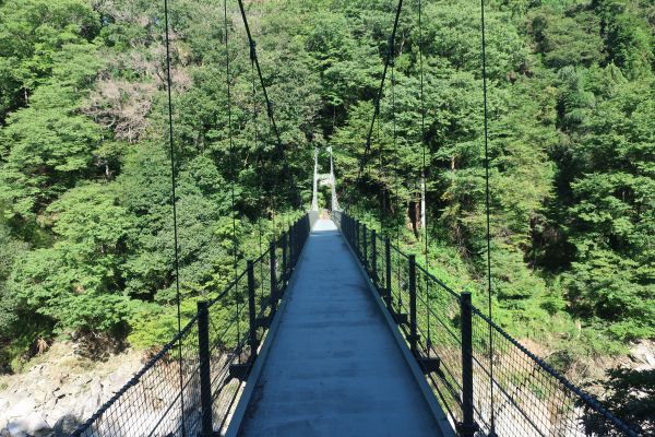 下が見えるわけでも無いが、そこそこ揺れる吊り橋で 少し登って展望台のベンチで休憩、日陰で風があると涼しい。 まだ時間があるので、最近出来たという天空ウォークへ。 こっちは新しいからか、そこそこ人が居た。