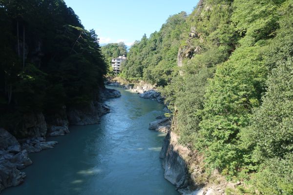 コロナ禍で規模が縮小してるんだと思うけど、野沢温泉よりも人が居た。 ミョウガのジャムを買うか迷うが、やめておいた。 宿に戻って朝食、良くある旅館飯。美味しく頂く。 8時半に宿を出発、R256を走り木曽川沿いのR19へ。