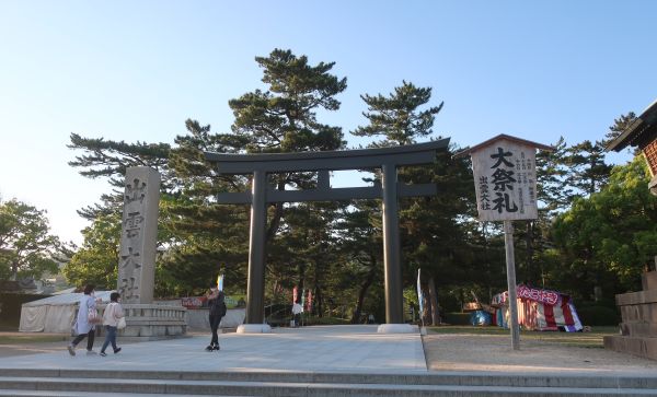 16時過ぎに出発、せっかくなので出雲大社に寄る。 到着したのは17時半、すでに通りの売店などは閉まってた。