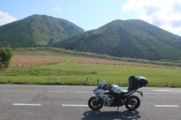 旅の安全を祈願、お守りを購入する。 18時過ぎにホテルに到着、大浴場でさっぱりする。 夕飯は、隣の日本海庄屋にするか迷いつつ駅前のセブンイレブン。 明日は萩に泊まる予定なんだが、ホテルが取れなくて少し焦ってくる。 --------- 駐輪 :ホテルの駐車場 走行距離 245km ---------- 6時過ぎに起床して朝食へ。ビュッフェは野菜多めが基本だ。 今夜の宿が取れてない。 道中に宿を確保することにして、予定より1時間早く出発する。 県道や広域農道を走って三瓶山周遊道路へ。(さんべさん)