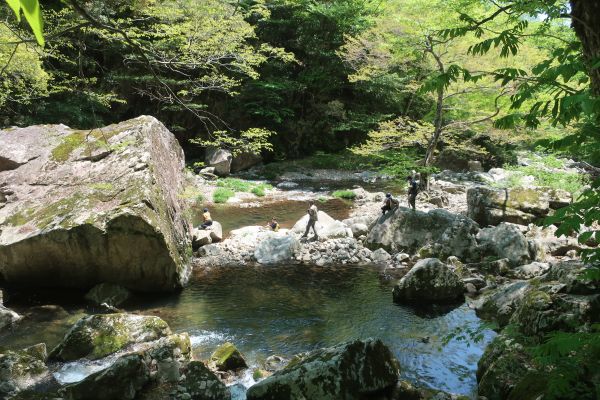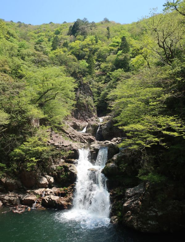 県道11が方角的に良さそうだったので走ったけど、残念な狭路だった。 Googleナビで走るんだけど、狭路ばかり進んでる様に思える。 11時前に水梨駐車場に到着。バイクを停めて、山道を歩いていく。 20分ほどで三段滝に到着。人だらけかと思いきや、1組しかおらずすぐに戻っていった。