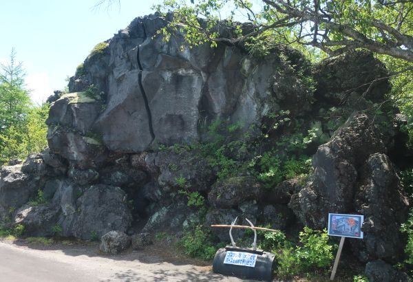 溶岩の黒い岩石が沢山出てきて、鬼押出し園に到着する。