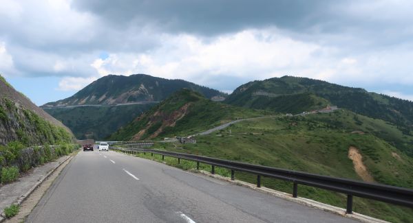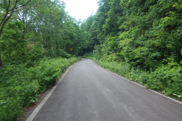 雲行きがよくないので、さっさと出発。奥志賀林道へ向かう。 奥志賀高原スキー場までの道は、道幅が広いけど道路がガタガタな感じ。