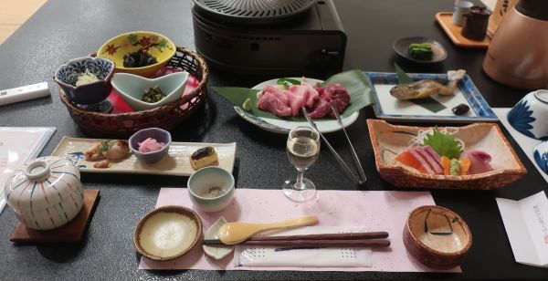 のんびり浸かれたんだが、野沢温泉といえば痛い熱さが特徴だろう。 3名が入浴中で水も入れていたが、かなりの熱さだった。(源泉82度) 体が温まったところで、宿に戻って夕飯へ。