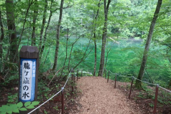宿から30分ほどで龍が窪の駐車場に到着する。 遊歩道を歩いて、池の周辺を歩く。
