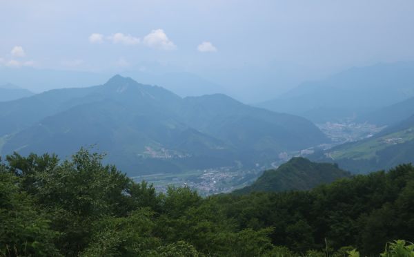 山頂を少し散策、徒歩10分ほどで三角点まで往復する。 十分涼めたので、14時前に山を降りる。 14時過ぎにドライブインを出るが、山の方でゴロゴロと雷鳴が。