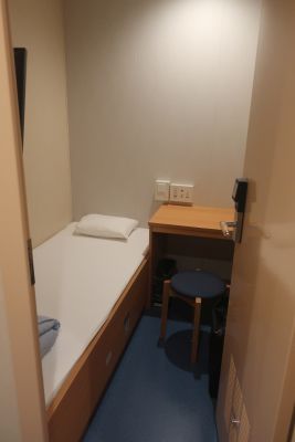 部屋へ荷物を運ぶ、今回は乗船時間が長いこともあってシングルにした。 いつもは乗船するとすぐに風呂だが、シャワーを浴びてから出てきたので無し。 既に23時、飲んでから寝ようかと自販機で缶ビールを購入したけど