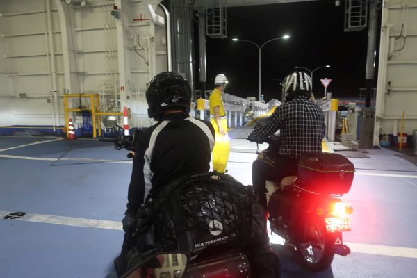 就航1周年ということで、まだ建物が新しい。 乗り込み時間になったのでバイクへ移動する。