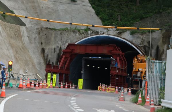 ポッポの丘を出て、亀山ダムへ向かう。 R465で工事中の蔵玉トンネルは、トンネル幅の拡張がほとんど完了してる状態。