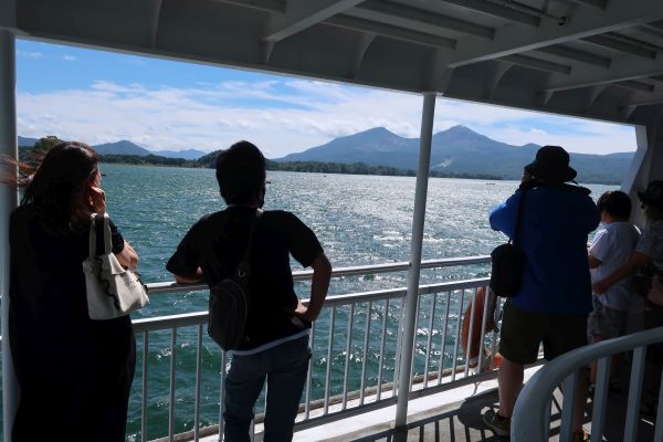 35分の遊覧を終えて、桟橋に戻ってきた。 出発時間を早くして時間の余裕があるので、五色沼の散策路へ。