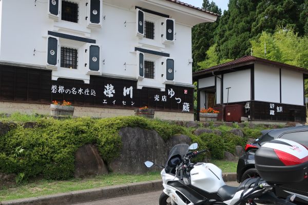 ソースカツ丼は安定のうまさ。注文を受けてから揚げるカツが良い感じだ。 そして、いわな握りは口の中で解ける食感で美味い。 昼食後、ゴールドラインを南下する。 道中に酒蔵を見かけ、通りすぎたが Uターンして覗いてみる。