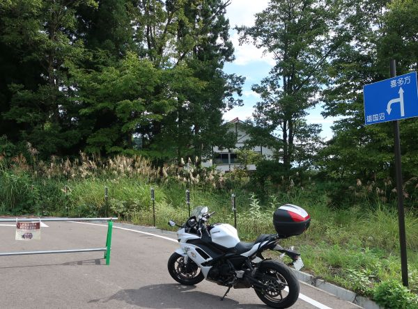 ほとんどが登山客で、バイクは20台ほどだろうか。 ソフトクリームなどが売ってるけど、特に腹が減ってないので 30分ほど滞在して出発。檜原湖へ向かう。 レークラインに入り、中津川渓谷まで。 国道に戻り、檜原湖遊覧船の駐車場にバイクを入れる。