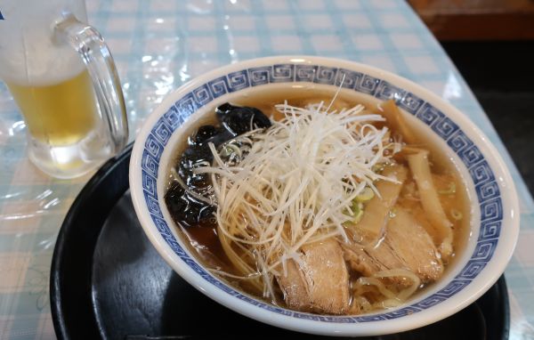生ビールと、看板メニューっぽい蔵ラーメンを注文する。 ちじれ麺に薄めのしょうゆという、喜多方ラーメンそのもの。 せっかくなので、もう1軒。とりそば にこみ 和 へ。 食材が切れて準備中の看板にかけ替えてた所だったけど、 こっちも同様の喜多方ラーメンだけど、少し濃い目でネギが多くて好み。 スーパーで酒を購入してホテルに戻り、明日の天気予報を確認する。 テレビを見たり録画アニメを見たりして、早めに就寝。 --------- 駐輪 :ホテル駐車場 ---------- 7時前に起床し、朝食を食べるべく喜多方の町に出る。 まずは、有名店の坂内食堂に行ってみる。