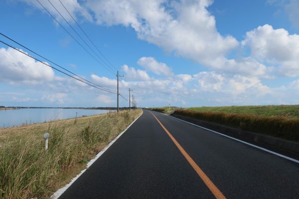 犬吠テラステラスは、食堂・カフェ・土産屋って感じ。 時間は15時半、特に何も買わずに出発する。 広域農道といえ、内陸部だからか車が多い。信号が少ないので、それなりにペース早いのが救いか。 ちょっと買い物して、夕飯を食べて18時半過ぎに出発する。