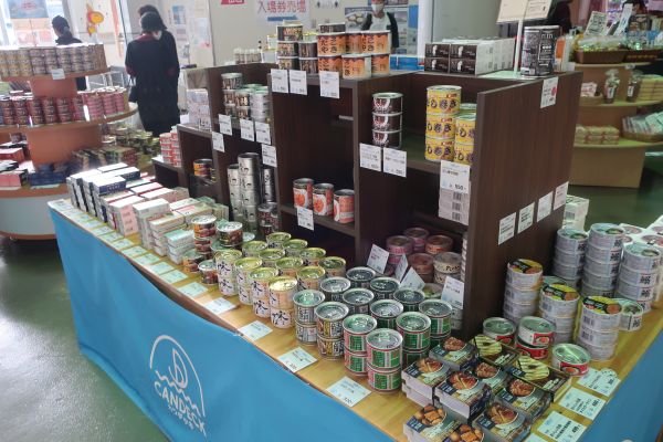 ウオッセ21という市場風の水産土産売り場を併設しており、魚や加工品を売ってる。