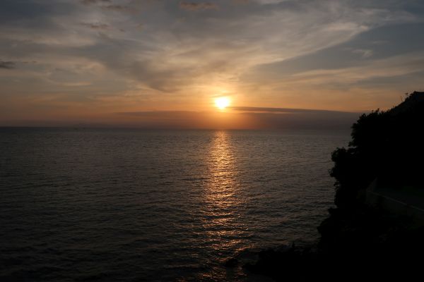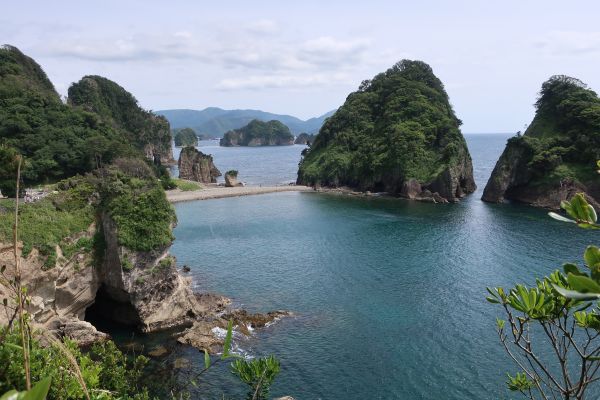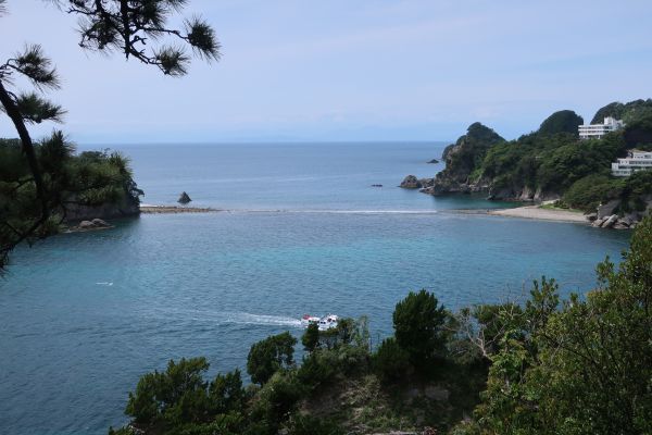 せっかくなので、ところてんをもらう。 子供のころは酢が苦手で、ところてんでウッとなった記憶があり 味は特になく、ツルツルした食感を楽しむ食べ物だ。 R136を北上して浮島海岸へ。 海水浴場の駐車場にバイクを停める、ダイビングをしてる人たちが沢山いた。 遊歩道を歩いていくのだが、めちゃ登る。