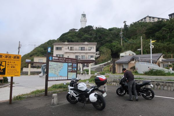 あまり腹が減ってなかったので、コンビニでホットドックとドリンクを購入して簡単に済ませる。 後から知ったが、このPAには富士山の天然水の蛇口があるらしいので次に来たときは 他のライダーが雨具着用で出発していく。 東名に戻って、牧之原SAまで移動する。 青ブタの祥子さん等身大パネルは健在だった。 相良牧之原ICで降りて、金谷御前崎連絡道路で南下する。 まずは、マリンパーク御前崎の富士山展望台の予定だったけど、 灯台に向かう道は堤防が続いてたけど、途切れて海が見えたとき「おぉぉぉ!」って思った。