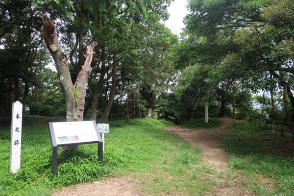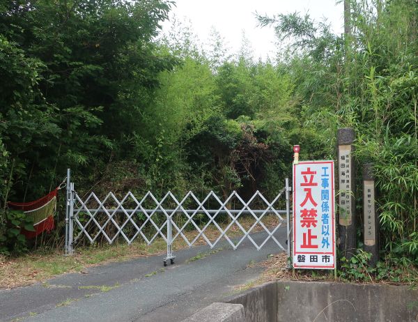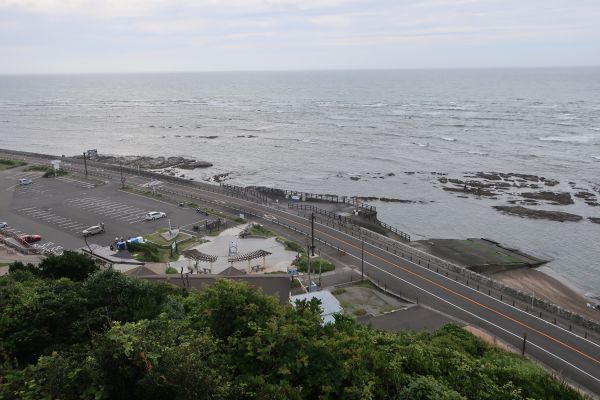 城跡は森の中にある感じで風が無く蒸し暑い。 次の目的地、福田海岸へ移動する。 福田海岸に到着するも、堤防工事で海岸には入れず。
