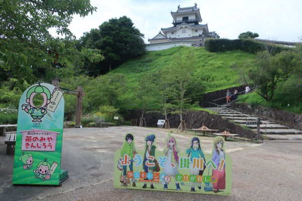 高さはそれほどないけど、高い建物は無いので遠くまで見れる。 浜松天竜ひのきの家紋ストラップガチャがあったので、お土産代わりに。 小さいけど日本庭園があり、滝の景色とかが良かった。 次は見附天神へ。(5巻 25話に登場)