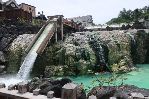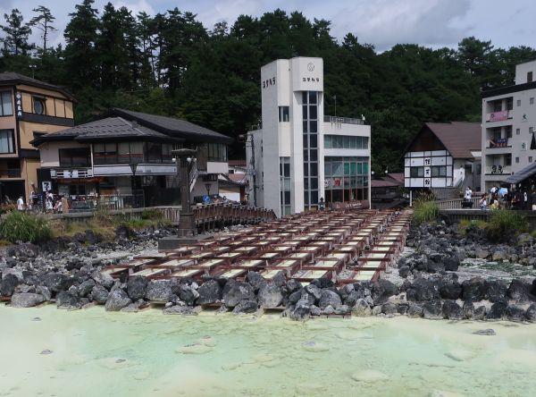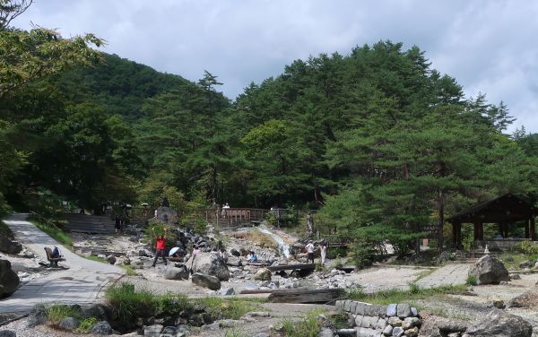 入浴料を払って、貴重品をロッカーに入れて脱衣所へ。 とにかくデカい、池のような広さ。(学校の25mプールな感じ) かけ湯が温泉で、口に含むと草津の味がする(酸っぱい) 草津は熱い風呂の印象だが、脱衣所の近くは下流側でぬるめ。 とにかく解放感がすごい。 風呂上り後、西の河原公園を通って温泉街へ。