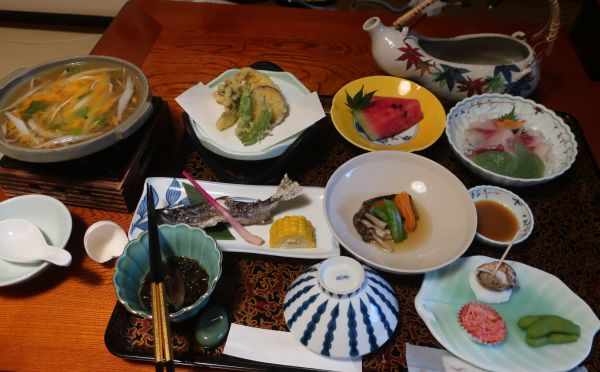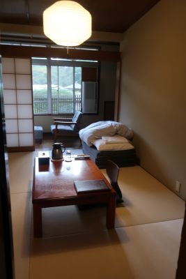 ダムの展望台に上がり、奥四万湖を見た後はダム湖の周遊道路を走る。 16時半に宿に到着した。 仕方ないので浴衣に着替えて風呂へ。 風呂上がりにビール、四万温泉エールはパンチが弱く感じた。
